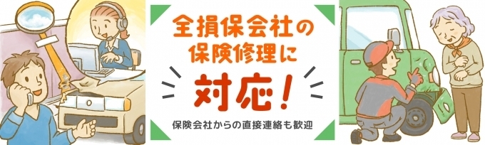 保険修理につきましても対応が可能となっておりますので、是非、当店までご相談くださいませ。全ての保険会社に対応しており、当店は自動車保険の代理店である為、事故相手の保険会社とのわずらわしい交渉もサポートさせて頂きます。
